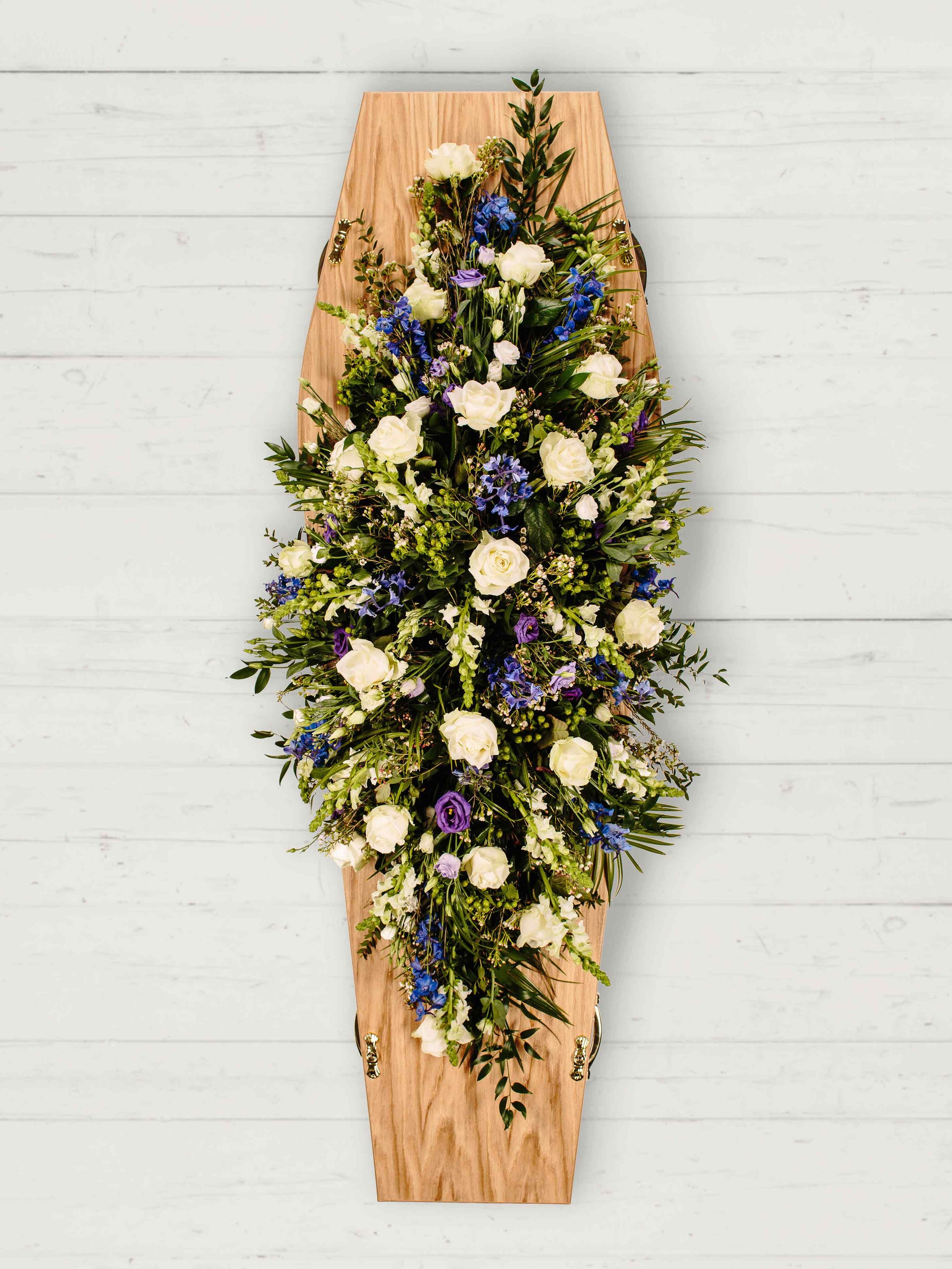 Our coffin sprays are carefully designed to offer a beautiful and respectful tribute, using fresh seasonal flowers arranged with care and attention. Each spray is thoughtfully crafted to reflect natural elegance and heartfelt remembrance.