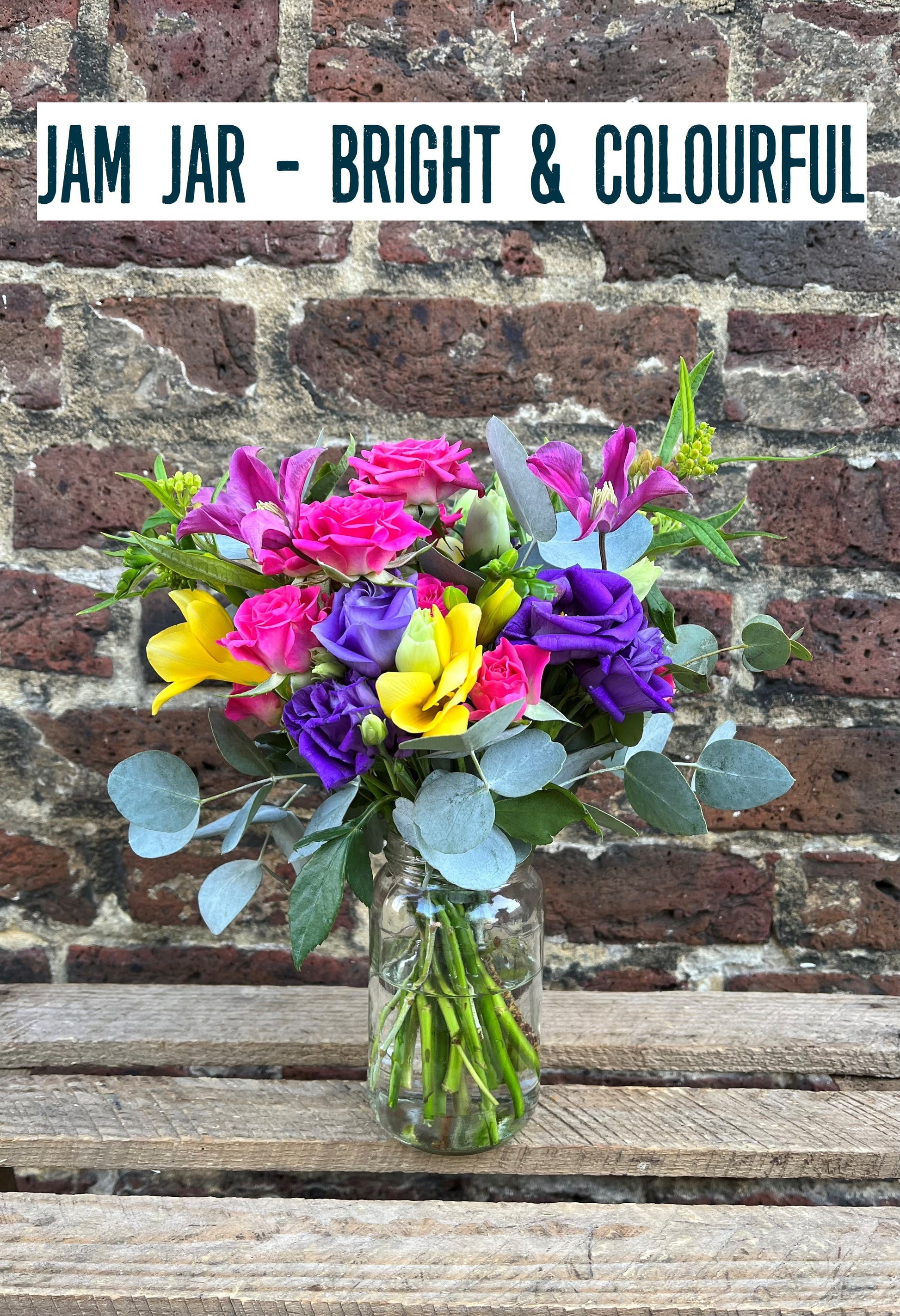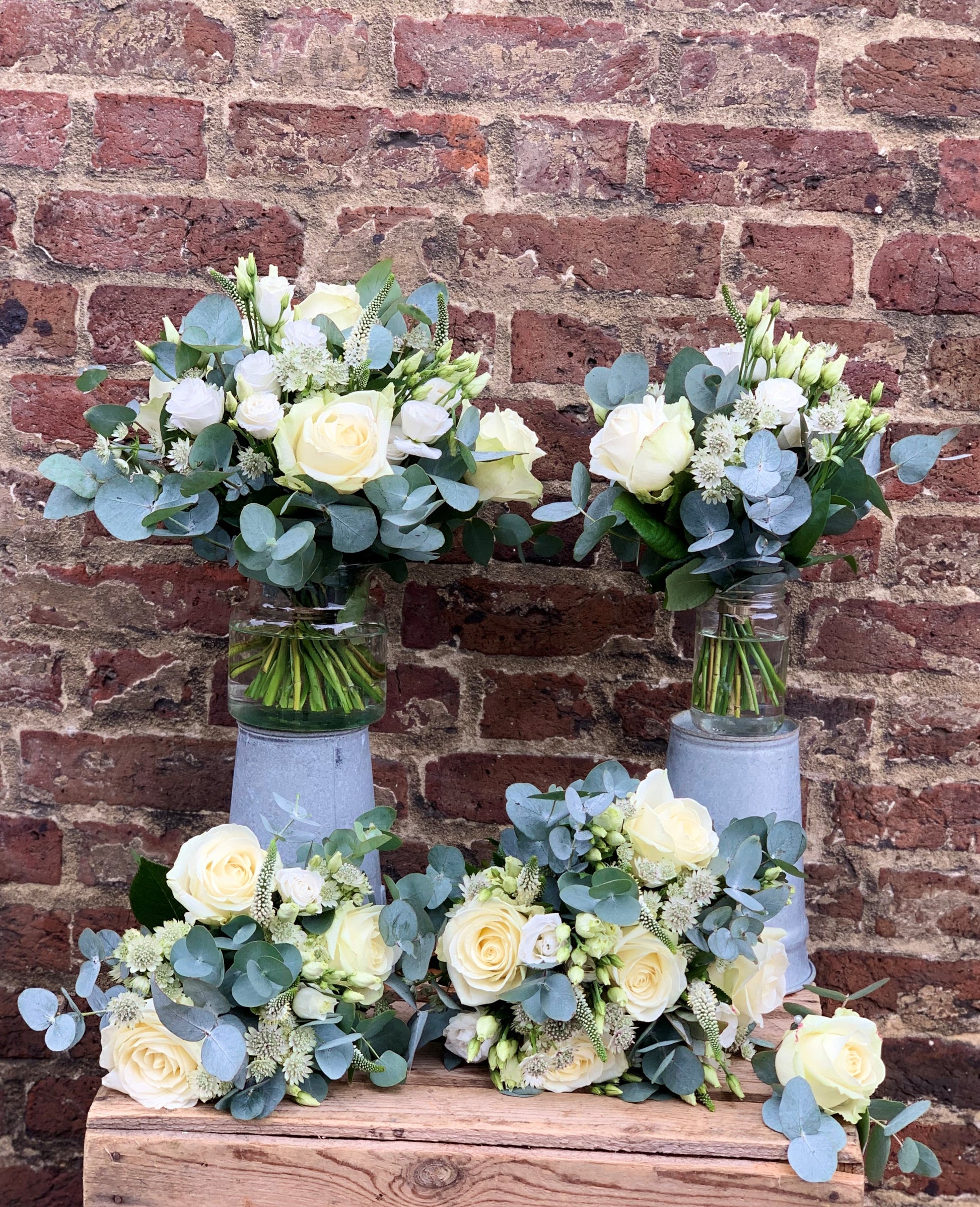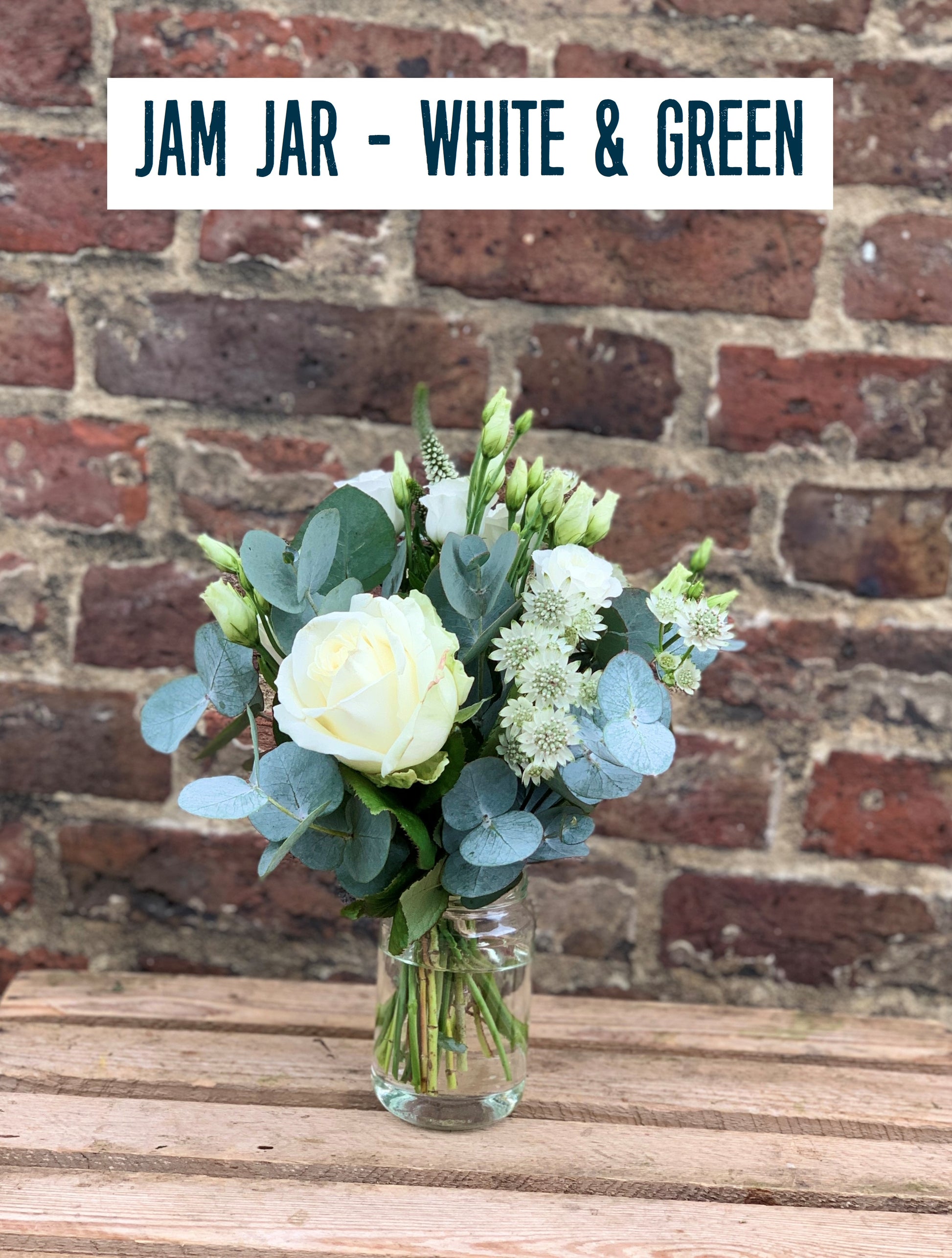 Jam Jar Posies (£40): A charming posy in a keepsake jam jar, designed to complement the bridal flowers.