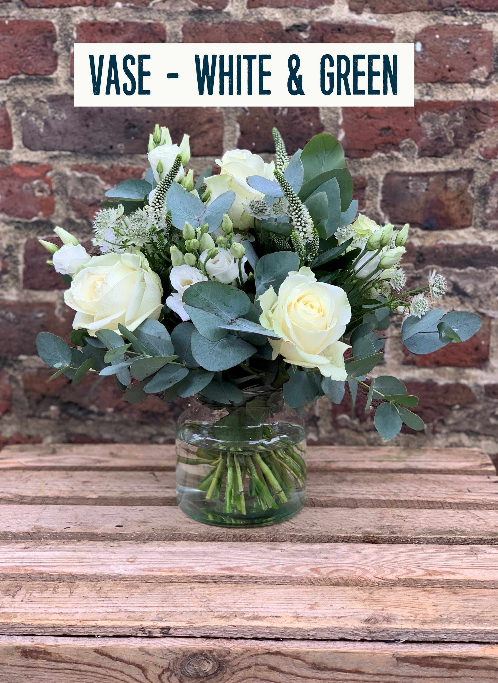 Vase Arrangements (£95): Simple yet stunning floral displays in a glass vase, perfectly matching the bridal bouquet and yours to keep.